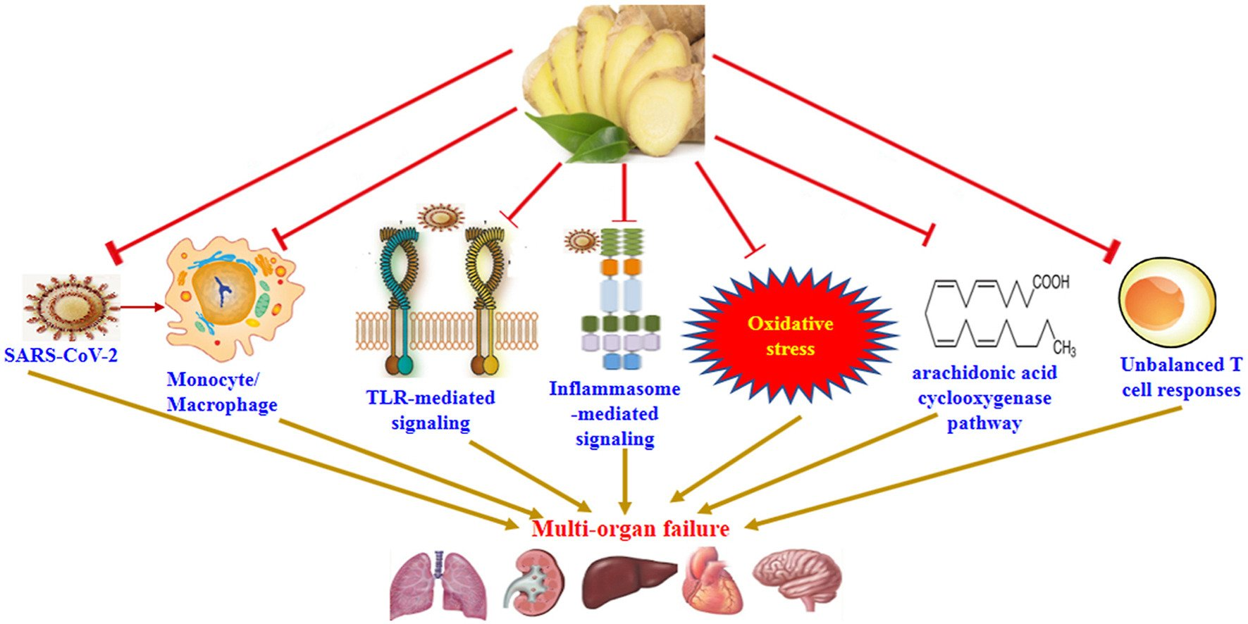 • Ginger can exert anti-SARS-CoV-2 effects and interferes with inflammation.